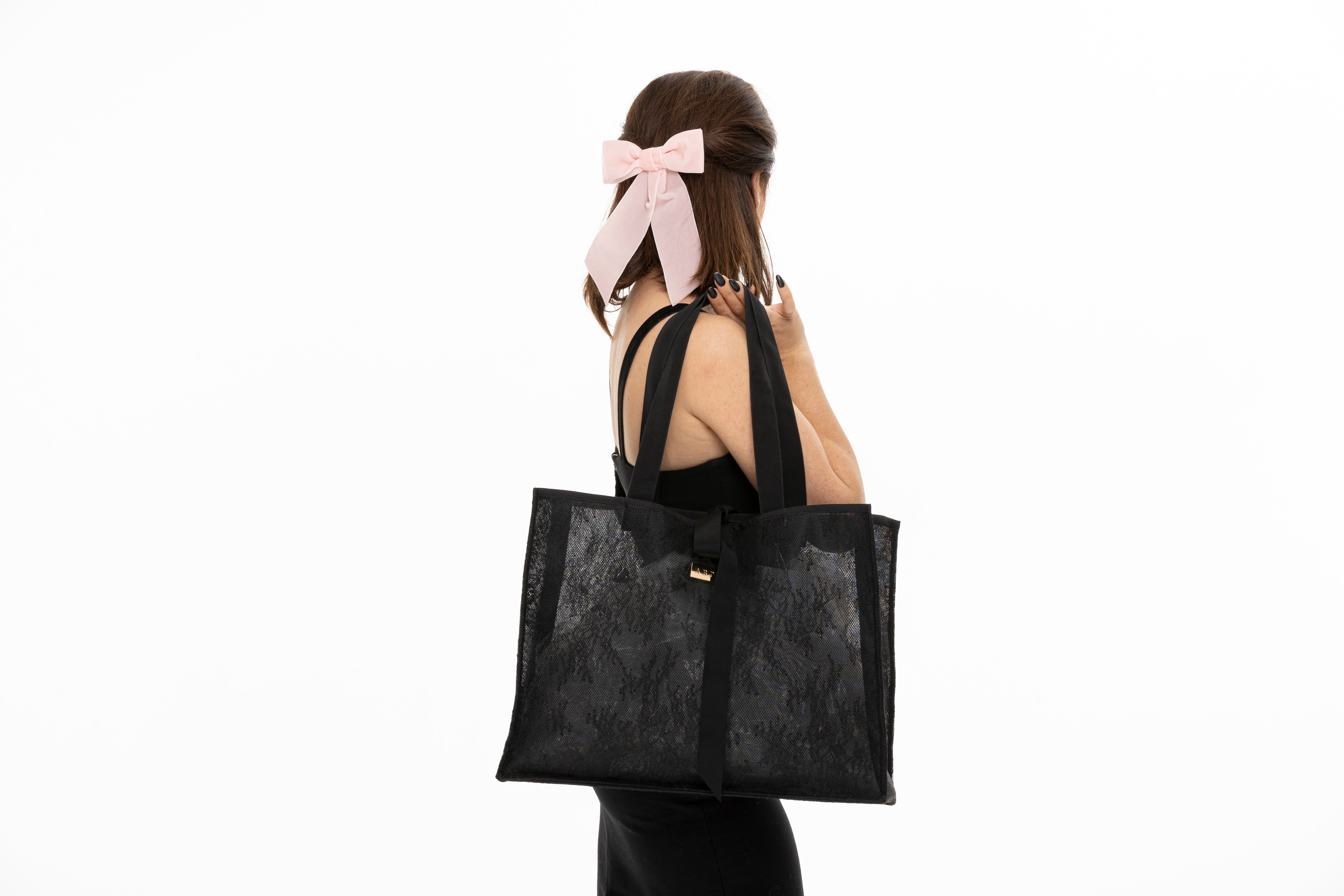 Sac à main en dentelle doté d'une fermeture au milieu.